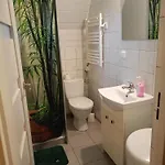 Badrumsfaciliteterna i Dom W Jablonkach Wakacje, Kaszuby, Chmielno, Sznurki Gwiezdna 24 inkluderar också en dusch. Badlakan och handdukar finns också bland bekvämligheterna i badrummet.